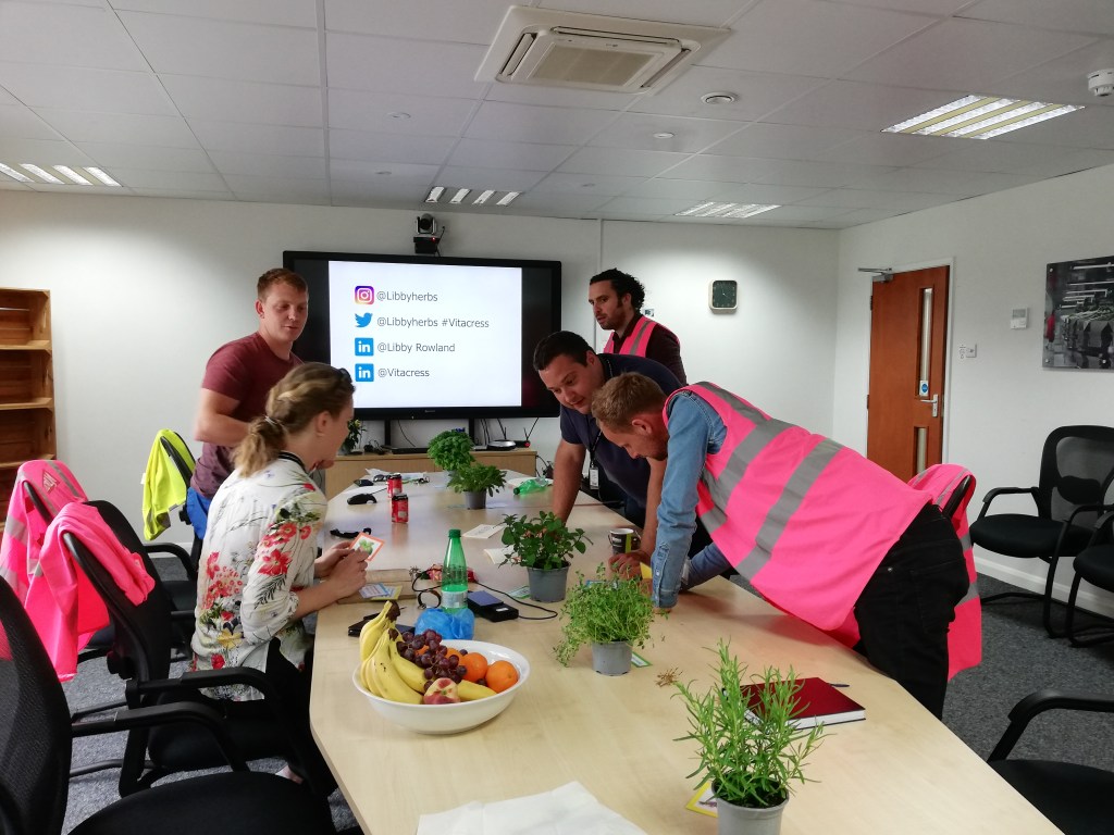 Libby and Matt hosted their Fellows at their places of work in July 2019, Vitacress Herbs and Intercrop.